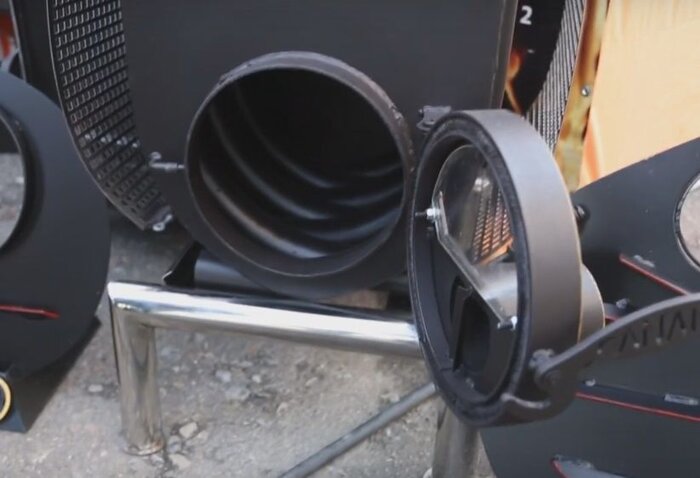 Принцип роботи печі, досить простий. Ви закидаєте дрова, підпалюєте їх, закриваєте грубку і після цього починається горіння, а потім опалення приміщення. Тліюча деревина у камері згоряння виділяє генераторний газ, спалювання якого виділяє додаткову енергію. Через верхні трубки виходить тепле повітря, а дим виводитися через димар.