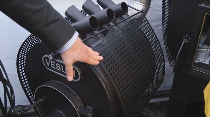 Піч Булерьян Vesuvi classic «05» зі склом та перфорацією працює в економному режимі і є відмінною заміною старих печей на дровах, буржуйок і будь-яких інших обігрівачів на дровах або газу. Конструкція вміщує в себе двоярусну топку, в якій і відбувається спочатку загоряння багаття, а потім його тління. За допомогою вертикальних труб, які знаходяться зверху буллерьяна, відбувається вихід теплого повітря і обігрів приміщення.