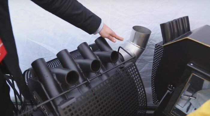 Ззаду розташована труба, яка повинна приєднуватися до димоходу;